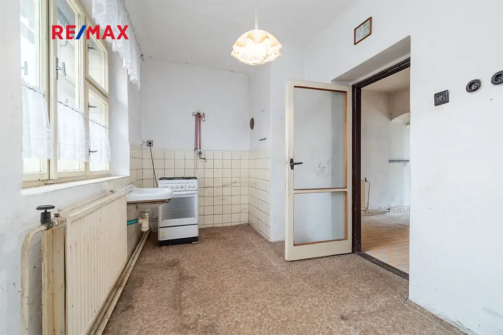 Tento rodinný dům o dispozici 2+1 a užitné ploše 168 m² se nachází v malebné obci Kbelnice v okrese Plzeň – Jih. Nově byla zrekonstruována pouze koupelna, zbývající část objektu je nutné rekonstruovat. Dům je z části podsklepen. V současnosti je vytápěn kotlem na tuhá paliva a krbovými kamny v obývací místnosti. Ohřev vody zajišťuje elektrický bojler. Střešní krytinu tvoří betonové tašky, okna jsou dřevěná špaletová, krov je ve velmi dobrém stavu a je zde možné vybudovat další prostorné obytné místnosti. Dům je napojen na obecní vodovod a kanalizaci. Navíc je na pozemku 776 m² k dispozici velká zděná stodola – ideální pro uskladnění věcí či zahradní techniky. Součástí stodoly je i prostorná garáž, která může sloužit zároveň i jako dílna.