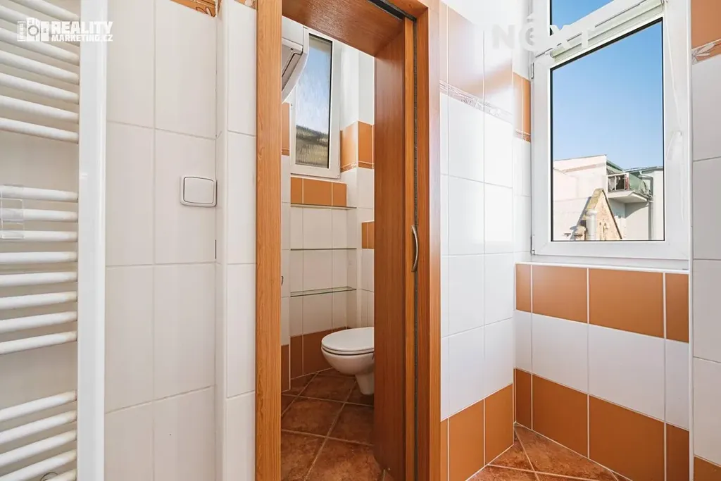 Byt dále nabízí praktickou prostornou komoru. Povrchy podlah tvoří kombinace dlažby a plovoucí laminátové podlahy.