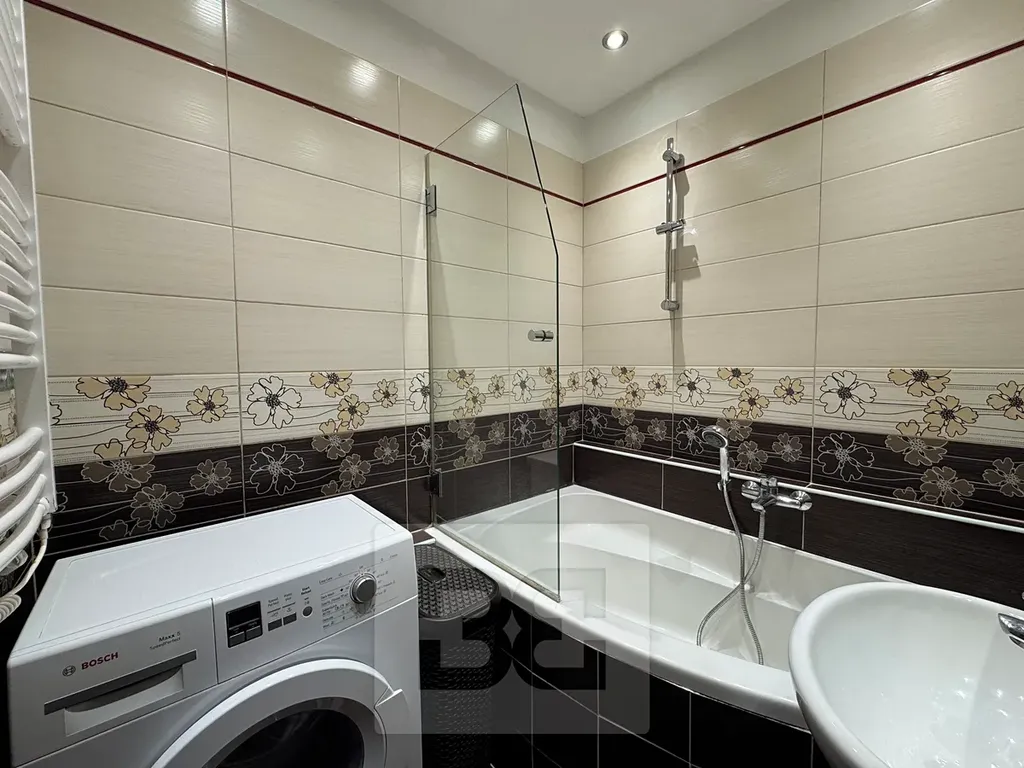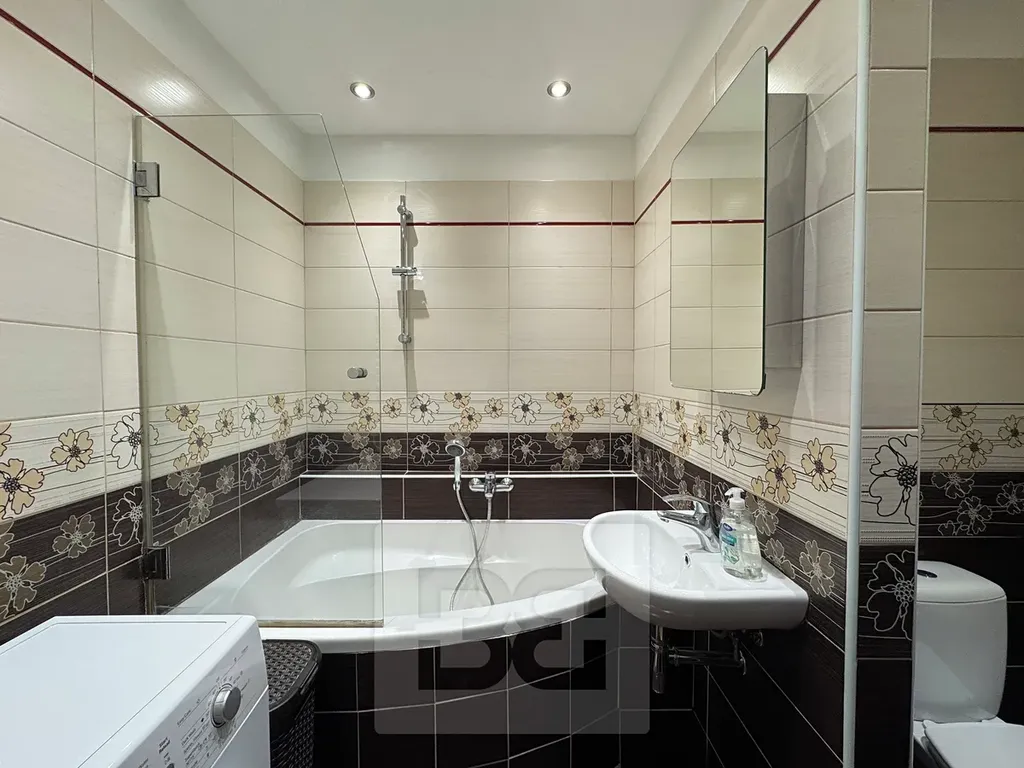 Byt disponuje vstupní předsíní s úložnými prostory, dále zrekonstruovanou koupelnou s toaletou, kde zůstává k dispozici zánovní pračka.
