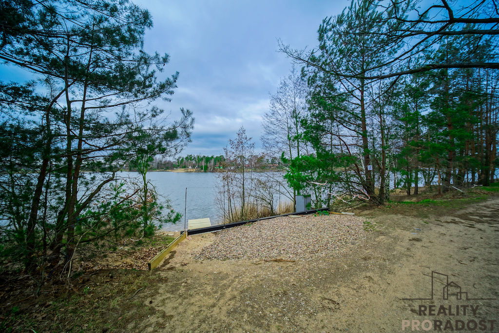 Jedná se o soukromý pozemek o velikosti 195m2 přímo na břehu velkého písníku v Mělicích.