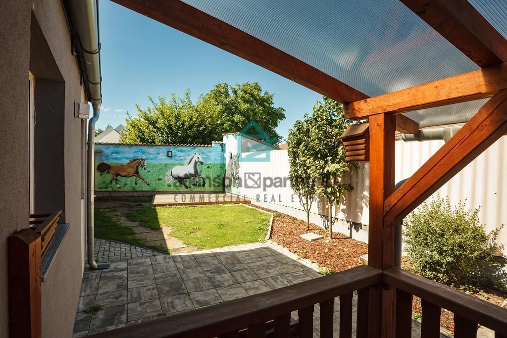 Součástí domu je pěkně udržovaná zahrada s venkovním posezením a pergolou, která přímo vybízí k letnímu grilování nebo odpočinku po práci.
