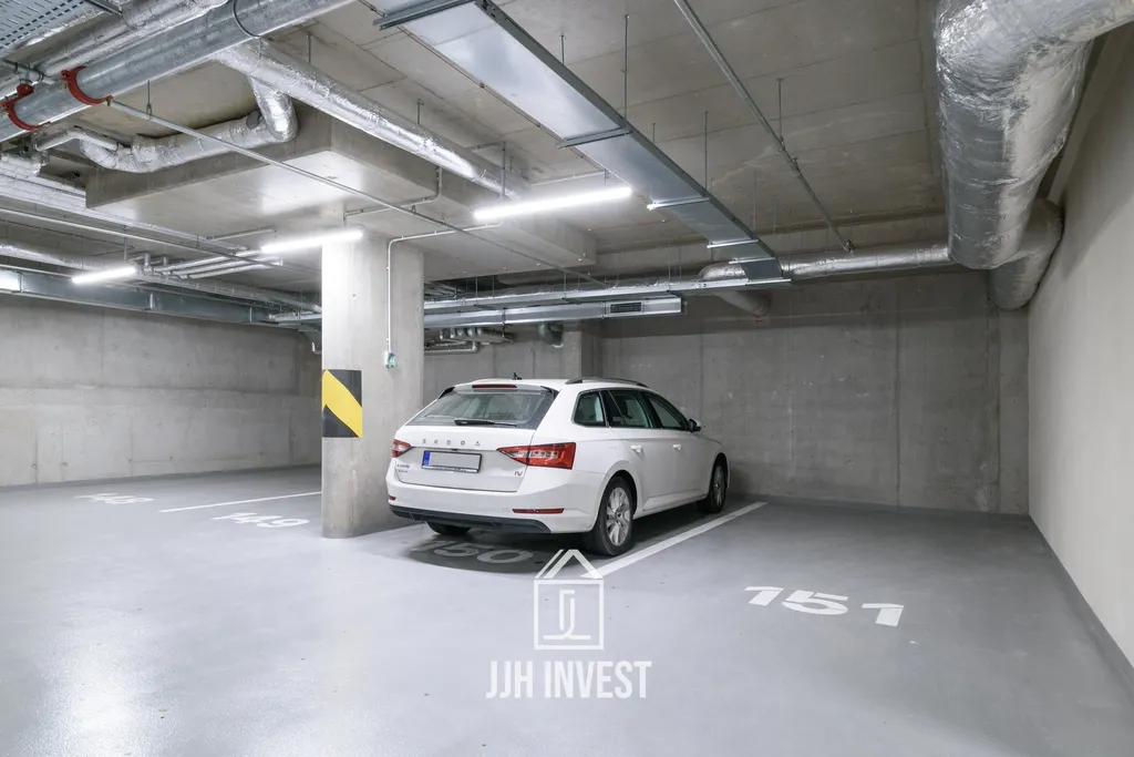 Součástí nájmu je také prostorný sklep (5,4 m²). K bytu je možné pronajmout parkovací stání v podzemních garážích za 2.500 Kč/měsíc.
