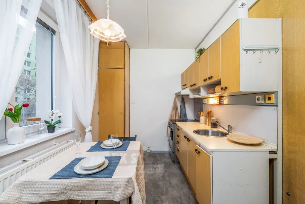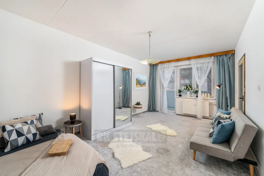 Nabízíme ke koupi byt o dispozici 1+1 v osobním vlastnictví. Byt se skládá z prostorného obývacího pokoje, samostatné kuchyně, koupelny, oddělené toalety, lodžie a sklepní kóje.