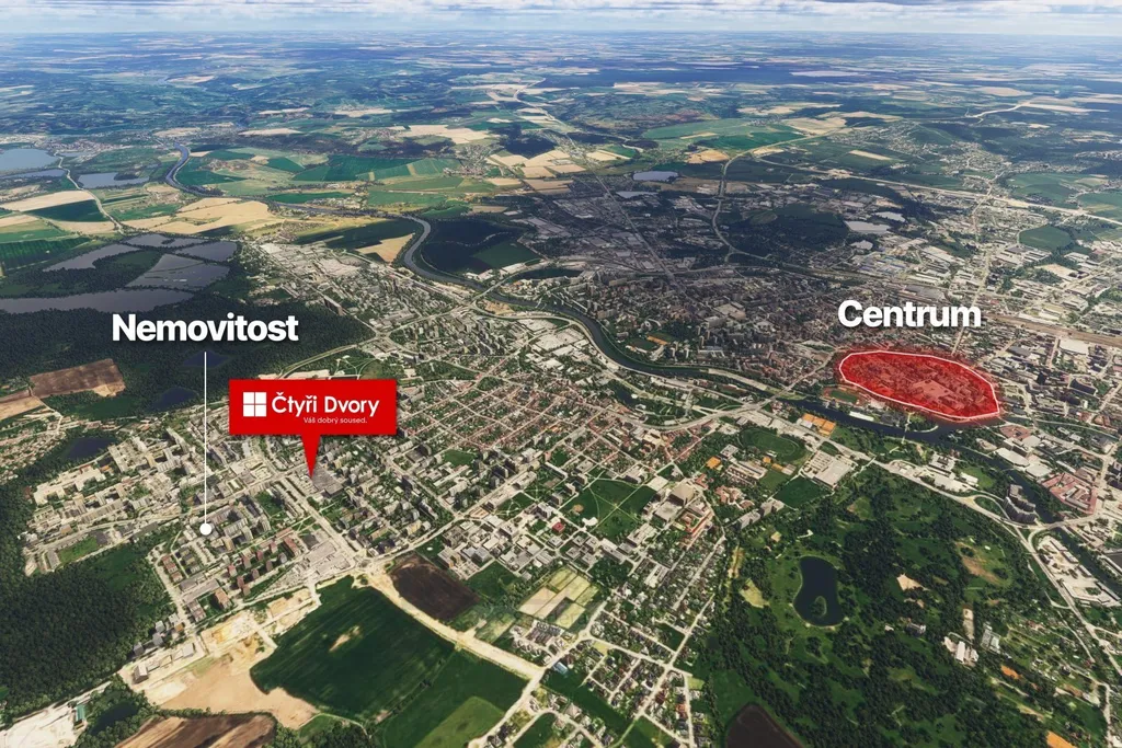 Lokalita se vyznačuje výbornou občanskou vybaveností – v docházkové vzdálenosti do 10 minut se nachází obchodní centrum Čtyři Dvory, prodejny Billa a Penny Market, pošta a další služby. Milovníci přírody ocení blízkost lesa, vzdáleného přibližně 350 metrů, ideálního pro procházky a volnočasové aktivity.