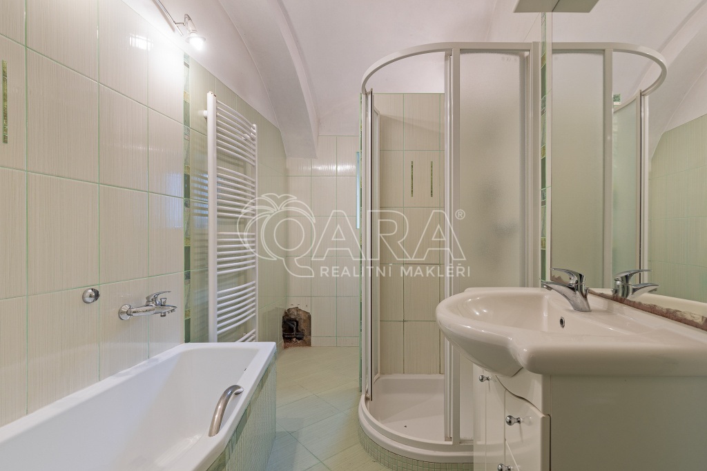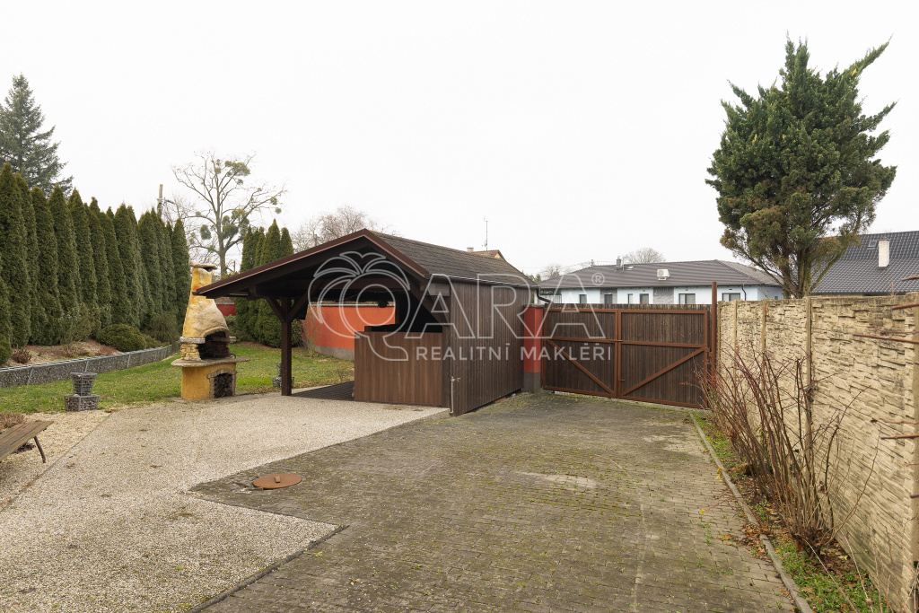 Byt v patře Vám nabízí velkoryse řešený otevřený prostor spojením obývacího pokoje s kuchyní. Kuchyně je vybavena plynovou varnou deskou, elektrickou troubou a lednicí s mrazákem. V jídelním koutě se nachází stůl se židlemi. Pokoje jsou neprůchozí se střešními okny Velux. Koupelna je zařízena masážní rohovou vanou, sprchovým koutem a 2 umyvadly. Úložné prostory nabízejí skříně u schodiště nebo v pokojích. Za horkých letních dnů určitě oceníte altánek s kuchyňkou a venkovní gril, kde si rádi posedíte s přáteli a dopřejete si kafíčko nebo grilovaný stejk.