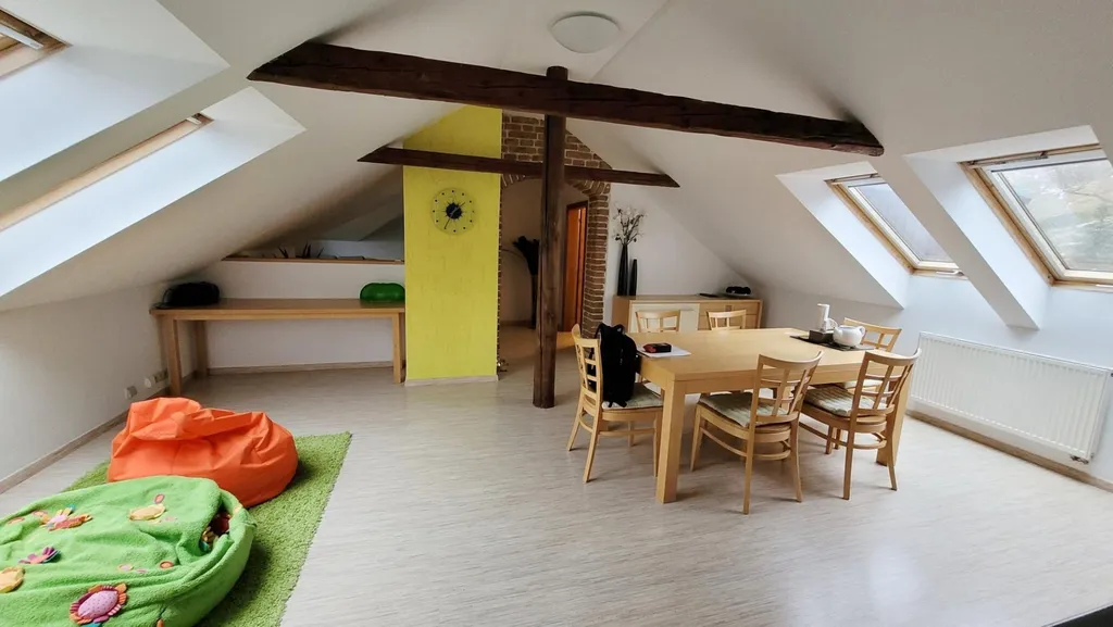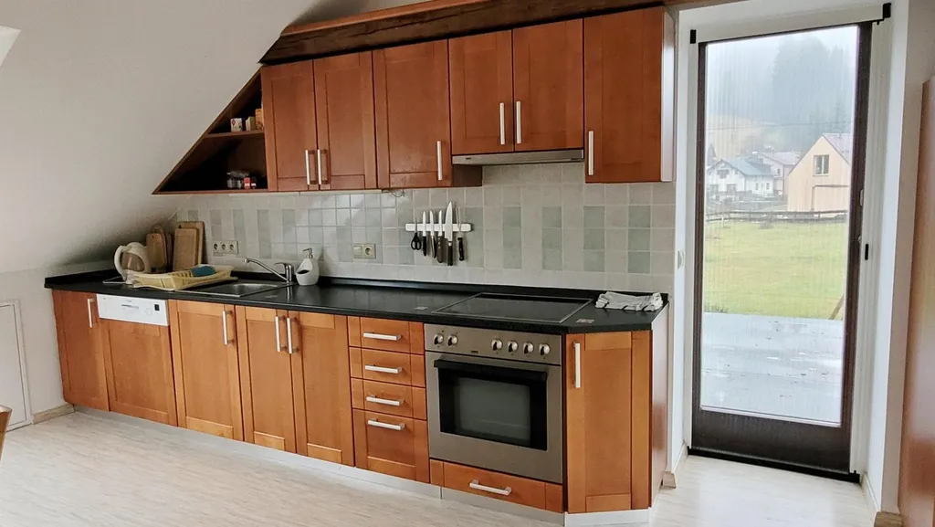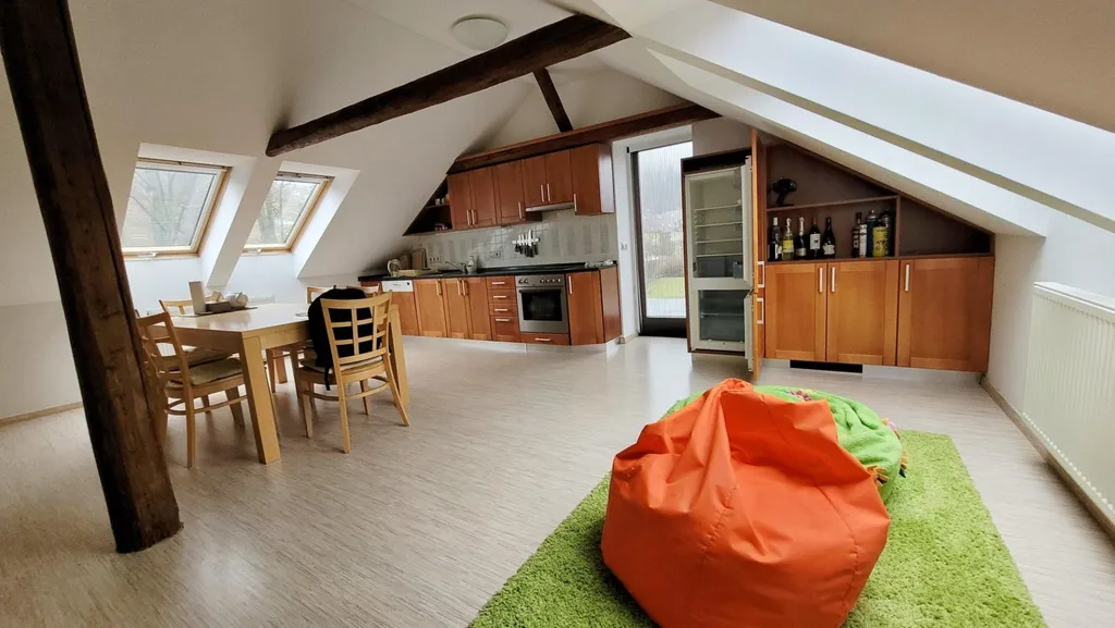 Exkluzivně nabízíme k prodej kompletně zařízeného bytu o dispozici 3+1 a celkové rozloze 141,9 m2 (obytná plocha 123,7 m2) jehož příslušenství tvoří terasa 34,3 m2 a sklep o rozloze 35,6 m2 v klidné části obce Bedřichov. Příjezd po zpevněné silnici, vlastní parkoviště pro rezidenty. Výměry místností: pokoj s jídelnou a kuchyní 65,4m2, dětský pokoj 25,1 m2, ložnice 19,3 m2, koupelna s WC 8,5 m2, prádelna s druhým WC 5,4 m2, chodba a schodiště 10,8 m2, chodba 7,4 m2 a dále sklep přístupný ze zahrady 35,6 m2 /sklep je sdílený a možné je využívat jej z jedné poloviny/ a privátní terasa 34,3 m2). Vstup do bytu se nachází ve druhém nadzemním podlaží a v tomto podlaží se nachází pouze předsíň se schodištěm do 3.podlaží ve kterém se nachází celý byt (velmi klidný podkrovní byt bez přímých sousedů). Z inženýrských sítí je k dispozici přípojka elektřiny, vodovod, kanalizace. Topení zajištěno kombinací vlastního elektrokotle s etážovým rozvodem a krbových kamen, ohřev vody zajištěn vlastním elektrickým 150 litrovým bojlerem. Připojení k internetu 02 nebo wifi síť místních poskytovatelů. Měsíční náklady .ve výši 3.900,-Kč z čehož je 2.485,-Kč fond oprav + elektřina, dle spotřeby - dodavatel ČEZ + internet. Energetická náročnost budovy nebyla doložena a z toho důvodu je uvedena hodnota G. Dům byl kompletně rekonstruován v roce 2007 a v roce 2010 byla dokončena výstavba předmětného bytu. Společenství vlastníků nemá žádné dluhy a na jaře bude probíhat oprava hydroizolace terasy a dále budou opraveny/vyměněny okapové žlaby. Úklid společných částí domu, úklid sněhu zajištěn správní firmou. V obci Bedřichov je možné realizovat širokou škálu aktivit, jako je například sjezdové lyžování, vyhlášené běžecké lyžování, snowboarding a v létě je místo ideální pro turistiku, cykloturistiku a mnoho dalších aktivit. V případě únavy se v blízkém okolí nachází wellness resort poskytující veškerý servis. Výborná dostupnost Jablonce nad Nisou, Liberce a díky dálnici je dobře dostupné hlavní město Praha. Pro více informací či se zájmem o prohlídku nás neváhejte kontaktovat.