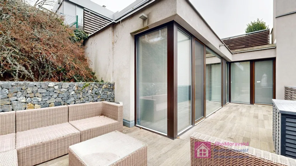 Bytová jednotka je plně vybavena nábytkem a spotřebiči, na terase je také venkovní posezení. Stačí si donést osobní věci a můžete bydlet. Kuchyňská linka je vybavena vestavěnou myčkou, indukční varnou deskou, digestoří, elektrickou i mikrovlnou troubou a lednicí s mrazničkou.