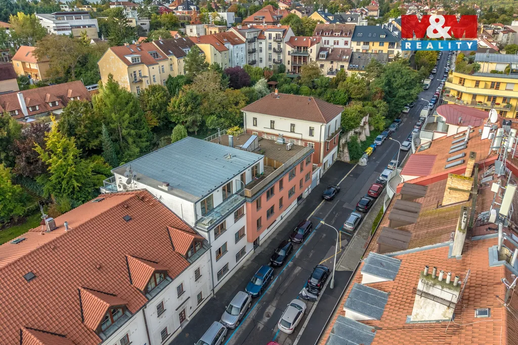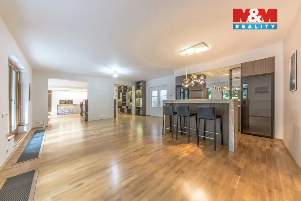 V přízemí se nachází prostorný obývací pokoj s nadstandardně vybavenou kuchyňskou linkou, jídelnou a vstupem na velkou terasu. Dále bar s vinotékou, pracovna, krb, toaleta, úložný prostor a vstupní chodba. V patře jsou tři ložnice, z nichž dva s vestavěnou šatnou. Dvě menší šatny jsou poté na chodbě. K dispozici jsou dvě koupelny s toaletou a balkon o velikosti 14 m², přístupný ze dvou ložnic. K bytu náleží dvě parkovací místa v garáži. Obyvatelé mohou využívat společnou zahradu s posezením a sdílenou saunu. Dům se nachází v oblíbené lokalitě Praha 6 – Břevnov s výbornou dopravní dostupností do centra, v blízkosti letiště i mezinárodních škol. Veškerá občanská vybavenost je v dosahu.