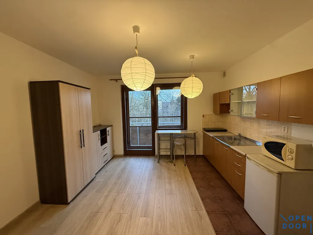 Byt se nabízí jako částečně vybavený. Z předsíně je vstup do koupelny se sprchovým koutem, pračkou a toaletou a do hlavní místnosti s kuchyňskou linkou se spotřebiči (lednice s mrazákem, indukční vařič, mikrovlnná trouba). Byt je po částečné rekonstrukci - nová plovoucí podlaha a vymalování na bílo.