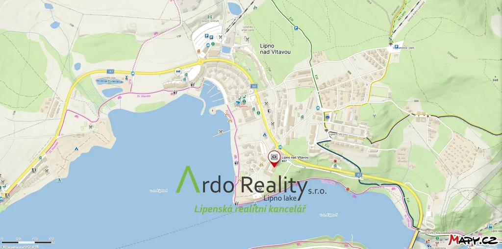 Krátkodobý pronájem bytu o velikosti 67 m2 v areálu DOKY Holiday resort v Lipně nad Vltavou poblíž nádherné pláže, aquaparku, skiareálu Lipno a přímo na cyklistické stezce. V areálu Doky je k dispozici venkovní vyhřívaný bazén, brouzdaliště pro děti, dětské hřiště, relaxační centrum se saunou a vlastní parkoviště. Areál je plný okrasné zeleně a parkových ploch. Apartmán je vhodný pro 4 osoby. Je zde elektrické vytápění, obytná místnost s rozkládací pohovkou, barevnou TV, jídelním stolem a kuchyňským koutem se sklokeramickou deskou (2 plotýnky), barovým pultem, elektrickou troubou, varnou konvicí, mikrovlnnou troubou a myčkou na nádobí. Byt je kompletně vybaven včetně lůžkovin, nádobí a zařízení kuchyně. Z obývacího pokoje je vstup na 7 m2 velkou terasu se zahradním nábytkem pro 4 osoby. Další místností je ložnice s manželským dvojlůžkem a vestavěnou skříní. V prostorné koupelně najdete vanu s umyvadlem a pračku. Byt má dále oddělené WC s malým umyvadlem. Poslední místností je sklep pro odložení lyží, jízdních kol a jiného materiálu. K nemovitosti patří vlastní parkovací stání. byt si lze pronajmout minimálně na 5 nocí. Nástup na ubytování od 15:00 do 18:00 a ukončení do 10:00. K ceně ubytování je nutné připočítat poplatek za pobyt 50,- Kč / osoba nad 18 let / den splatný obecnímu úřadu. Při předání klíčků bude požadována vratná kauce 3 000 Kč.