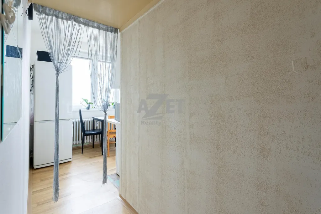 Byt nabízí zajímavý potenciál pro úpravu dispozice například vybudování šatny nebo pracovního koutku v obývacím pokoji.