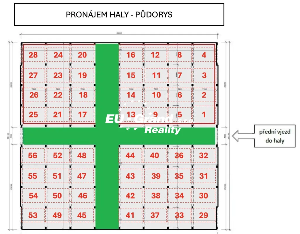Areál je přístupný nákladními vozy a umožňuje i jejich vjezd do haly (výška vrat 4,1 m). Světlá výška haly je minimálně 6,9 m. Budova je připojena na elektrickou energii a je nezateplená. V případě potřeby je možnost připojení na vodovod a kanalizaci. Celý areál je oplocený a vnitřní prostory haly jsou chráněny bezpečnostním systémem. Hala je vhodná např. pro uskladnění automobilů (i nákladních nebo obytných), stavebního materiálu, nábytku, ale i dalších předmětů. Možnost pronájmu je jak pro celý objekt, tak i částečně, dle vzájemné dohody. V případě potřeby jakýchkoli stavebních úprav pro specifické potřeby nájemce je možné se dohodnout a cena pronájmu se bude odvíjet od těchto úprav.