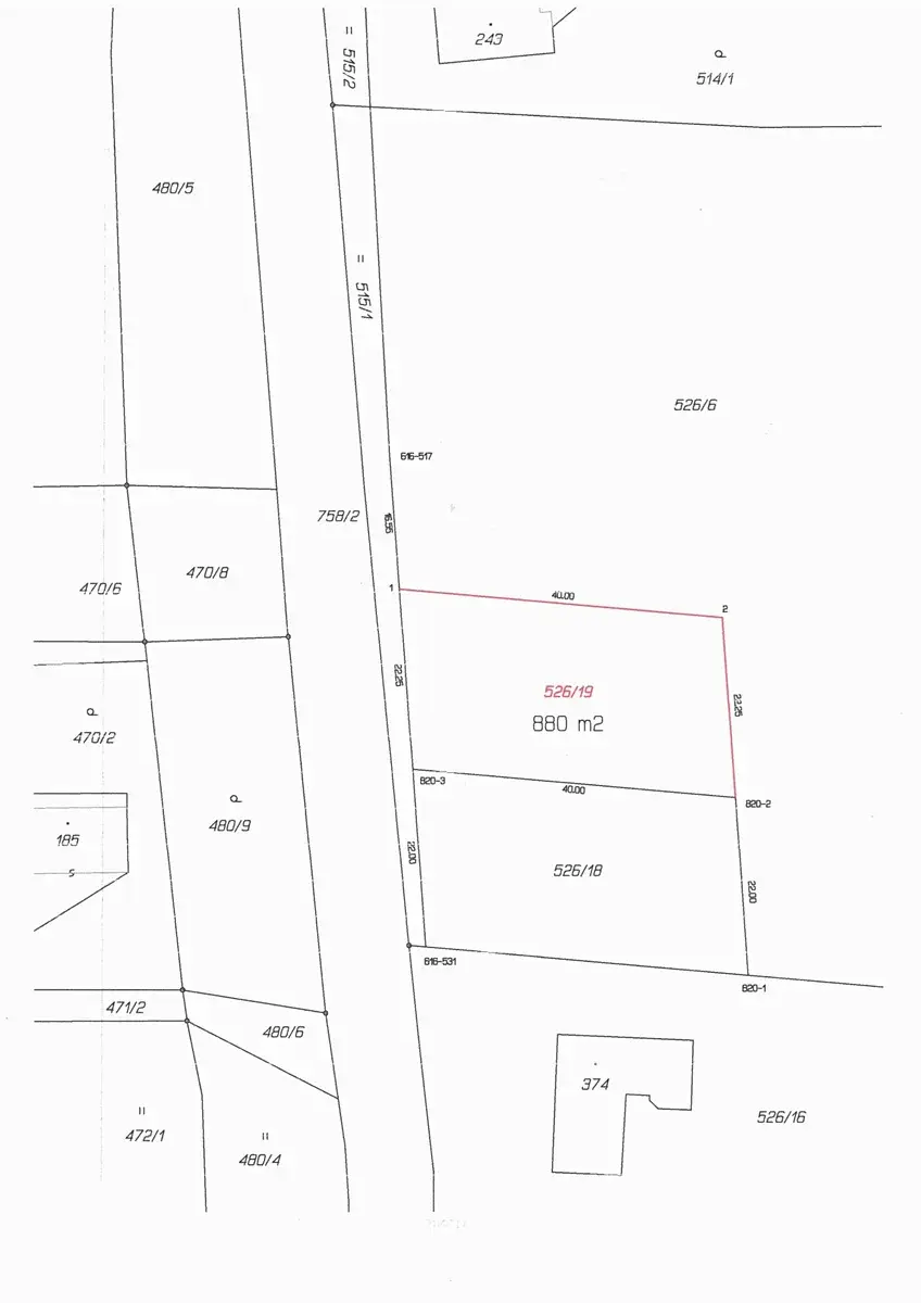 Tento pozemek, označený parc. č. 526/19, bude oddělen z původního pozemku parc. č. 526/6 na základě vyhotoveného geometrického plánu, přičemž oddělení pozemku je v současné době v procesu.