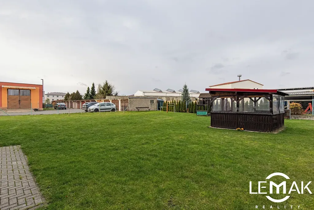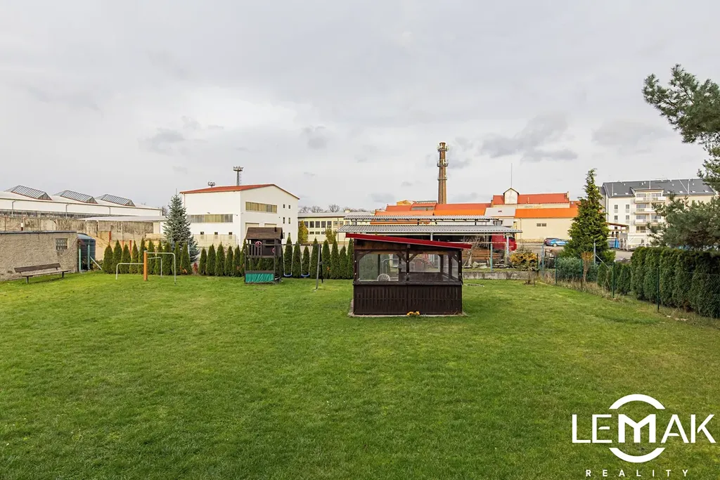 Panelový dům má vlastní oplocenou zahradu z přední a zadní části, kde je kryté posezení, lavičky a dětské hřiště.