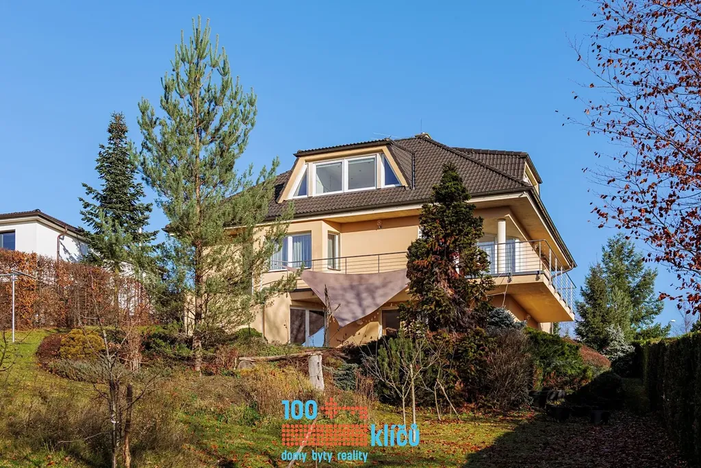 Realitní kancelář 100klíčů vám nabízí prostorný rodinný dům v prestižní a klidné lokalitě Praha 5 – Lipence, na adrese Nad žlábkem 668. Tato nemovitost se nachází na velkorysém svažitém pozemku o výměře 1 469 m², který domu zajišťuje naprosté soukromí a panoramatický výhled na jihozápad směrem na obec Lipence a krajinu podél řeky Berounky.