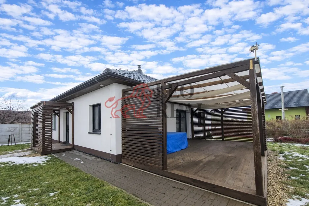 Součástí je pozemek, který nabízí prostor pro zahradu, posezení v pergole, která slouží k odpočinku a relaxaci. Parkování je možné v garáži pro dvě auta a nebo přímo u domu.