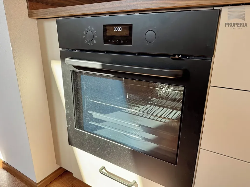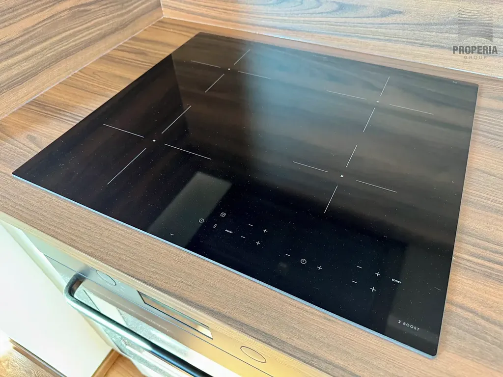 Byt není vybaven nábytkem kromě komfortní postele a stylové kuchyňské linky s vestavěnými spotřebiči - indukční varná deska, myčka nádobí, horkovzdušná trouba - viz. fotodokumentace. Jeho komfort dotváří koupelna s oknem, sprchovým koutem, WC a prostorem pro pračku.