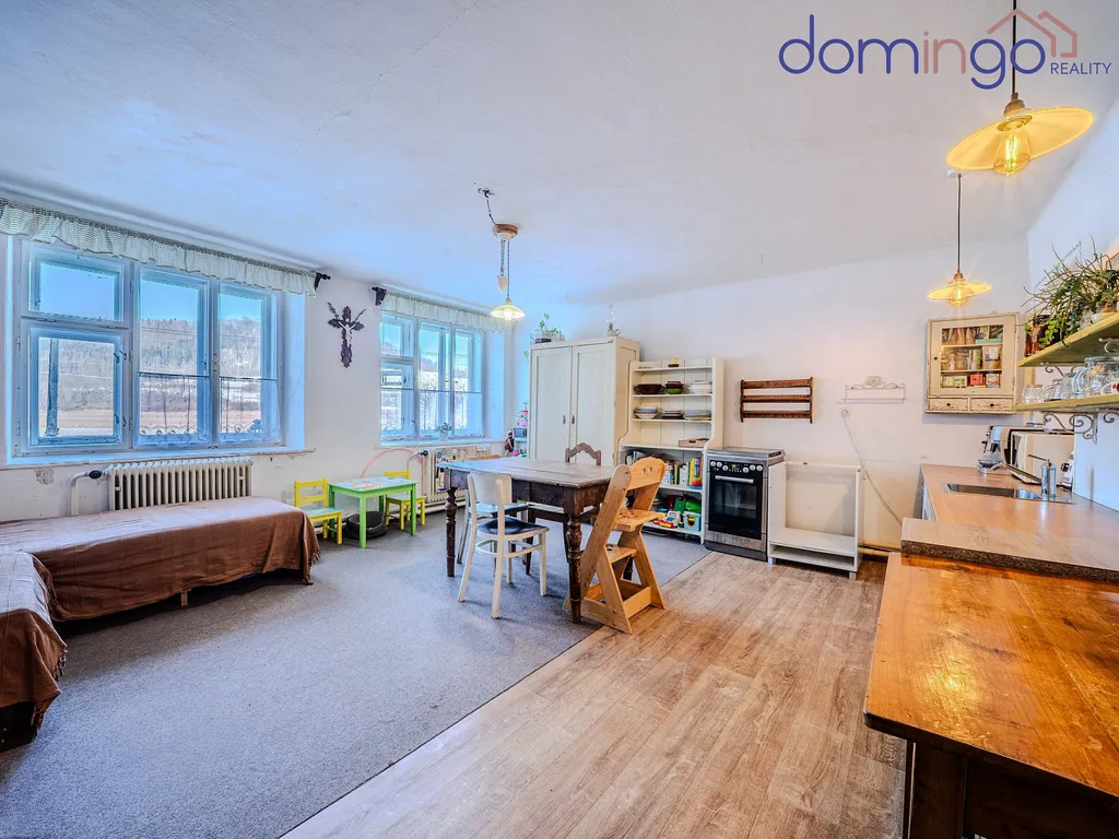 Dům je určený k rekonstrukci. Pro někoho práce navíc, pro jiného svoboda udělat si věci po svém, bez kompromisů a cizích zásahů. Vytápění je řešeno kotlem na tuhá paliva. Stavba je zasazená pod svah, což v letních měsících přináší přirozený stín a příjemný chládek.