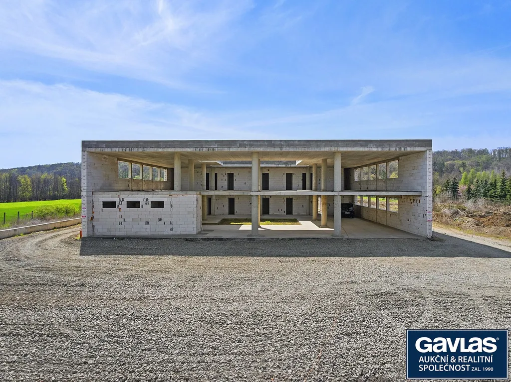 • Dvoupodlažní administrativní budovu ve fázi hrubé stavby s plánovanou užitnou plochou 983 m²