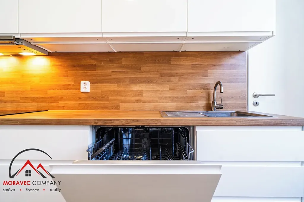Jednotka je plně vybavena – nechybí nábytek, spotřebiče i nádobí. Stačí si jen přinést osobní věci a můžete bydlet!