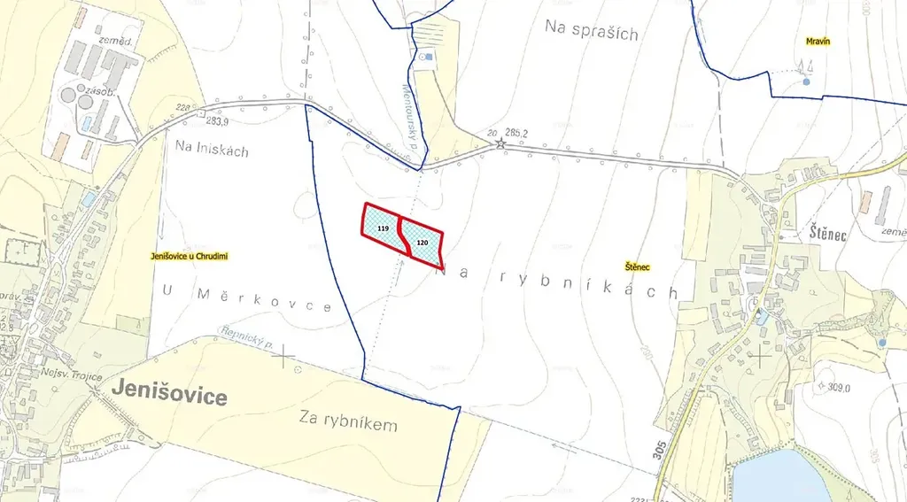 Nabízíme k prodeji atraktivní pozemky p.č. 119 a 120 o výměře 829 m2 v katastrálním území Štěnec. Pozemky jsou spoluvlastněné v podílu 2/14. Nachází se v klidné části katastru a jsou v současnosti řádně obhospodařovány místním zemědělcem. Přístup zajištěn přes obecní pozemky. Nepropásněte příležitost ke koupi pozemku v tomto katastru.