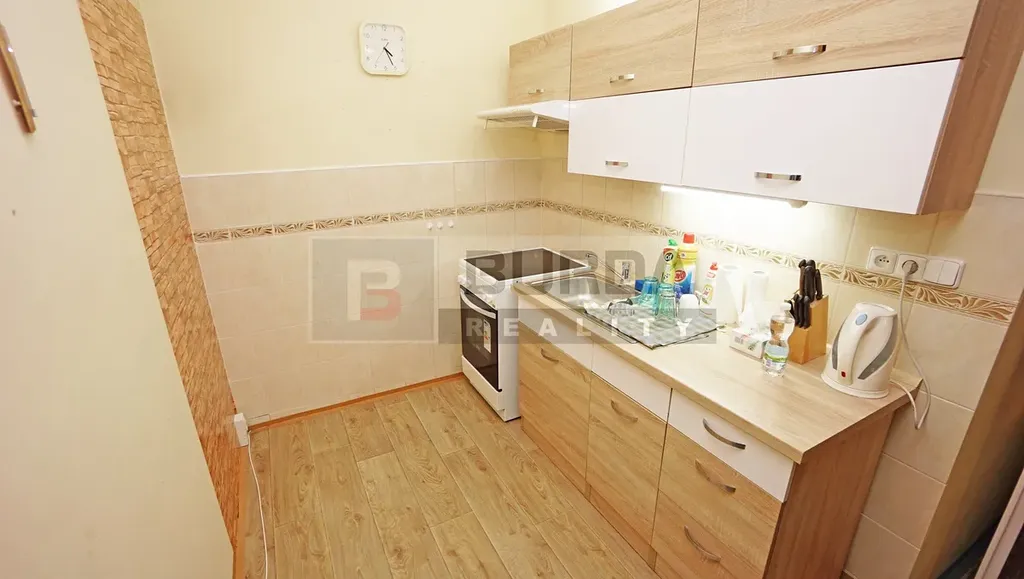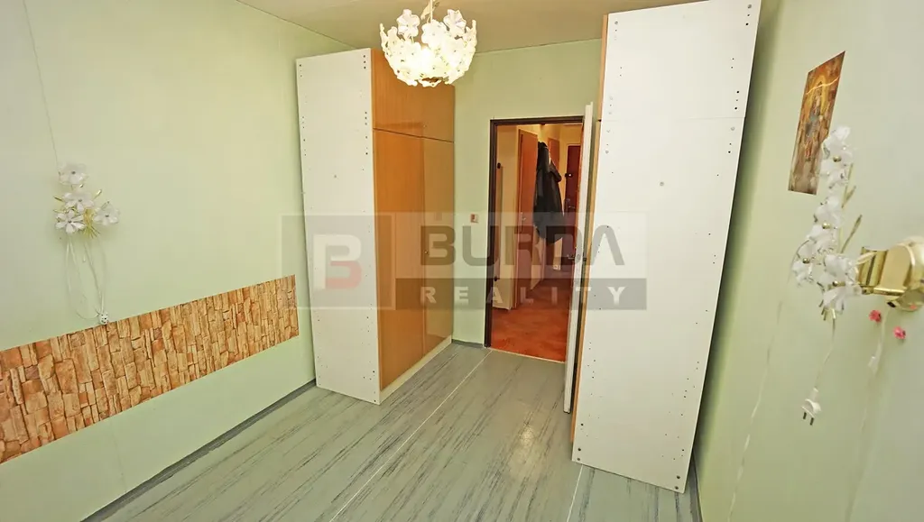 Vybavení bytu: kuchyňská linka, el. sporák Zanussi, sedačka bez křesel a bez konferenčního stolku, obývací stěna, v ložnici zůstanou dvě šatní skříně, v chodbě vestavěné skříně, svítidla v obou pokojích, ve všech oknech žaluzie a v obou ventilačkách síťky proti hmyzu, zasklená lodžie.