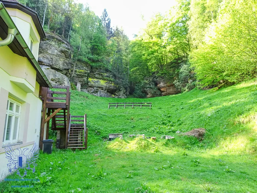 Exkluzivně vám nabízíme ke koupi dům se čtyřmi nově zrekonstruovanými apartmány v obci Kokořín, část obce Kokořínský důl. Jedná se o dvoupodlažní dům zasazený do malebné přírody CHKO Kokořínska s velkým pozemkem ohraničeným pískovcovými skalami volně navazující na tajuplné prostředí lesa. V přízemí se nachází veranda, vstupní chodba, dva apartmány, přičemž každý se skládá z obytné místnosti, kuchyňského koutu a koupelny se sprchovým koutem a toaletou. Dále v přízemí nalezneme kolárnu se čtyřmi kójemi pro každý apartmán, technickou místnost, dřevěnou pergolu (40 m2) a 4 pískovcové sklepy. Do patra vystoupáme po venkovním dřevěném schodišti a přes velkou dřevěnou terasu vstoupíme do chodby, ze které se dostaneme do technické místnosti a dvou apartmánů skládajících se každý z obytné místnosti, kuchyňského koutu, koupelny se sprchou a toaletou, navíc ke každému apartmánu patří ještě samostatný balkon. Celková užitná plocha včetně teras a sklepů je 232 m2, přičemž užitná plocha vnitřních prostor je 144 m2. Objekt prošel minulý rok celkovou rekonstrukcí vnitřních prostor včetně rozvodů a oken. Jako zdroj pitné vody slouží vlastní studna s novou technologií na čištění vody, kanalizace do jímky, elektřina veřejná, navíc je objekt napojen na kabelový rozvod internetu. Vytápění ústřední s el. kotlem pro každé patro zvlášť, v apartmánu č.2 lze také zatopit v krbových kamnech, ohřev vody v el. bojleru pro každý apartmán samostatně. Pozemky o celkové výměře 2851 m2 nabízejí klidné místo k odpočinku uprostřed romantické přírody, které láká svou atmosférou k návštěvě. CHKO Kokořínsko je díky svému unikátnímu prostředí s pískovcovými skalami ideálním místem pro turistiku, cyklistiku a další aktivity, což nahrává plánovanému využití domu jako ubytovací objekt. Případné hosty kromě okolní přírody jistě také potěší pouhých 300 m vzdálená Hospoda U Grobiána, jenž poskytla kulisu pro film Rebelové, restaurace U Báby Šubrový vzdálená dalších 100 m či nedaleké přírodní koupaliště Harasov. Výhodou je také dobrá dostupnost z Mělníka (10 km), Prahy (40 km) či Mladé Boleslavi (30 km). Neváhejte a přijeďte se podívat na tuto nemovitost uprostřed nádherné přírody, kterou vás rád provedu.