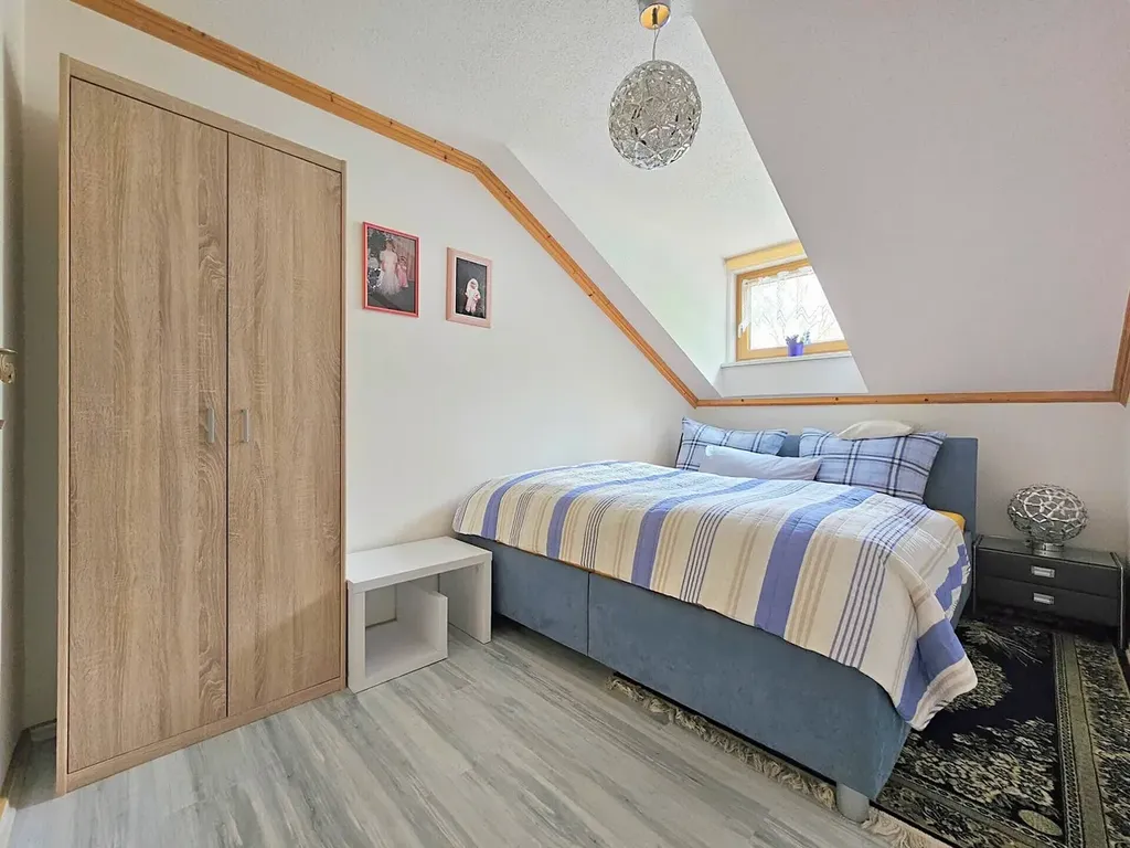 Nabízíme k prodeji krásný slunný byt 3+1, 102 m2 + balkon 8 m2. Byt je umístěný ve 2. patře (podkroví) domu v Bavorské Rudě, ul. Hafenbradlallee 14, okres Regen, Dolní Bavorsko.