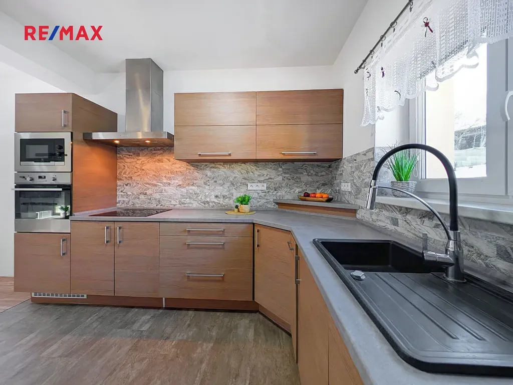 Součástí prodeje je kvalitní kuchyňská linka se spotřebiči, která zůstává součástí vybavení domu.