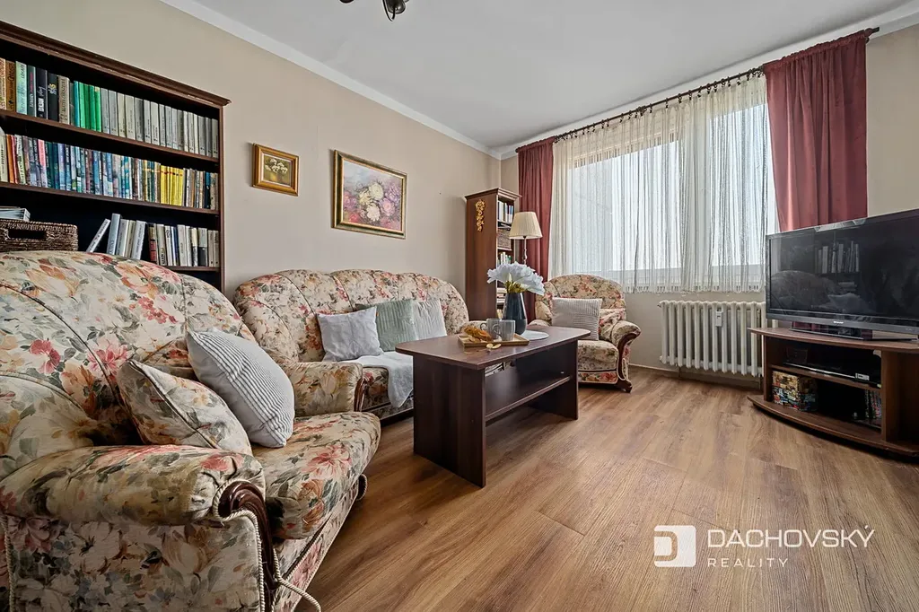 Bytová jednotka je prakticky řešena a působí velmi vzdušně. Vstup do bytu vede do prostorné chodby s úložnými prostory. Z chodby je přístup do obývacího pokoje, ze kterého se vstupuje do ložnice. Další samostatný pokoj je vhodný jako dětský pokoj nebo pracovna. Kuchyně je vybavena plynovým sporákem, elektrickou troubou, digestoří, lednicí a mrazákem. Z kuchyně je přímý vstup na zasklenou lodžii, která poskytuje krásný výhled do okolí.