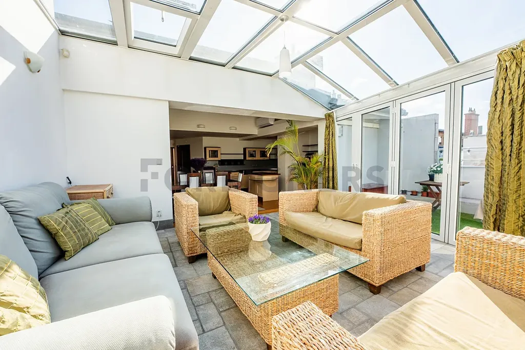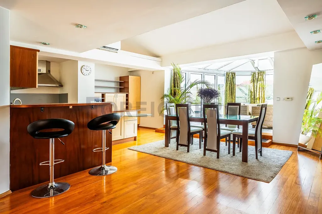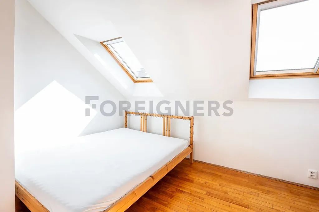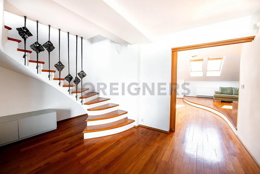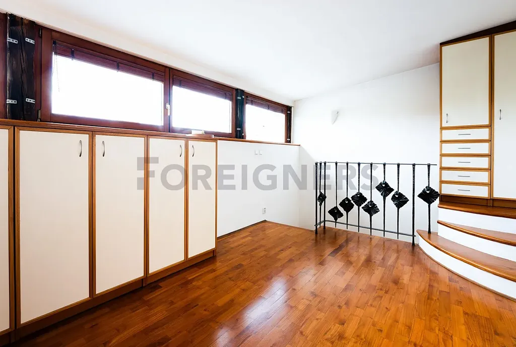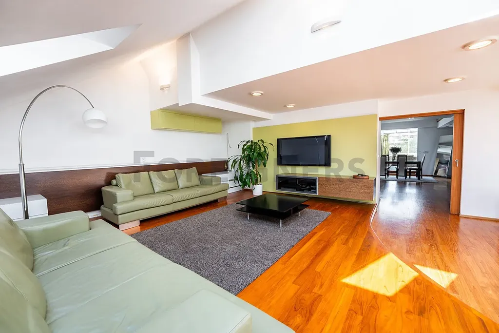 Dominantou bytu je prosklená zimní terasa (19 m²), ideální k relaxaci s výhledem do zeleně. Díky své poloze v posledním patře a pouze dvěma bytovým jednotkám na patře si užijete ničím nerušený klid a soukromí.