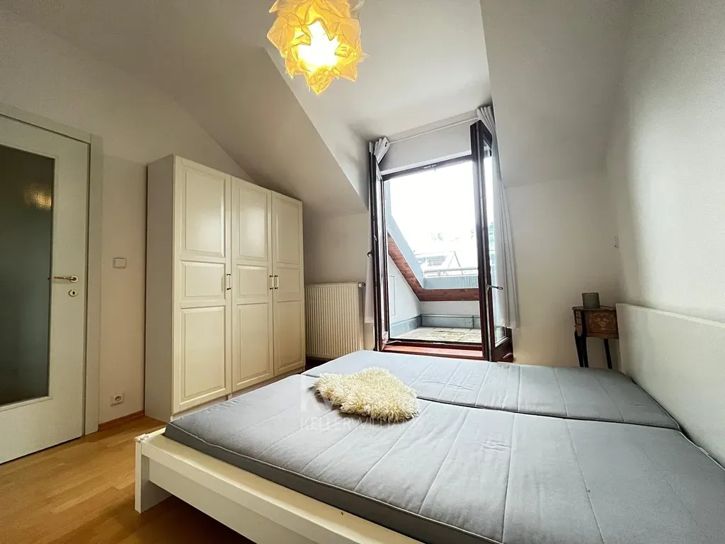 - Prostorná ložnice s postelí a šatními skříněmi s balkonem