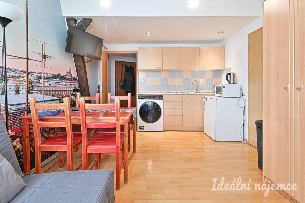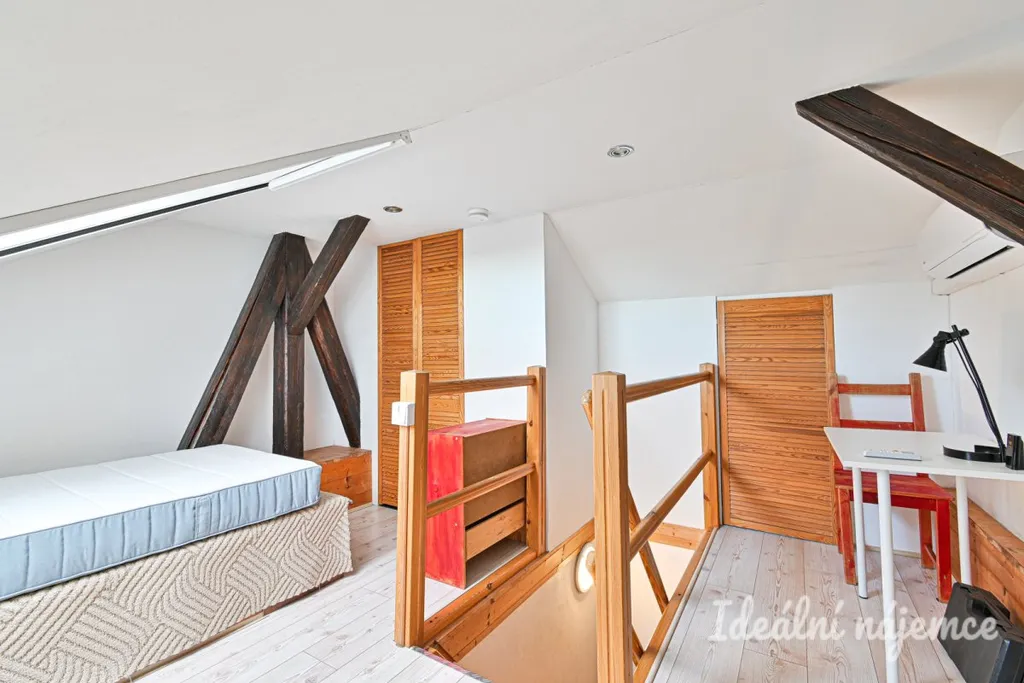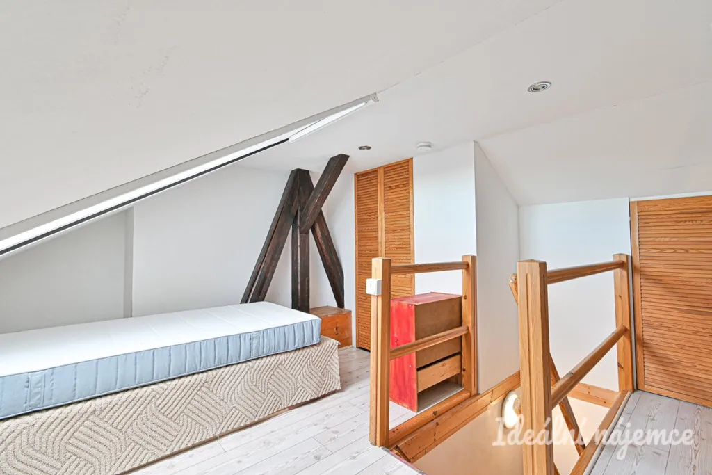 Máme k dispozici slunný byt 2+kk v oblíbené lokalitě vhodný k dlouhodobému pronájmu. Celková plocha bytu činí 44 m2, přičemž 28 m2 připadá na užitný prostor. Tento byt zahrnuje také vrchní pokoj o rozloze přibližně 16 m2, který má charakteristické zkosené stropy. I přesto, že tento pokoj není zahrnut do oficiální užitné plochy bytu kvůli své nižší a zkosené střeše, nabízí dostatečný prostor pro pohodlné užívání. Rozměry jsou orientační.