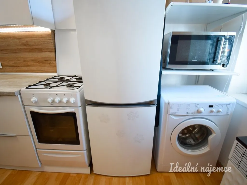 Byt se nabízí částečně vybavený. Moderní kuchyně disponuje lednicí, troubou, sporákem, pračkou a jídelním stolem s židlemi. Ložnice bude prázdná. Součástí koupelny je sprchový kout a umyvadlo. Toaleta je oddělená.