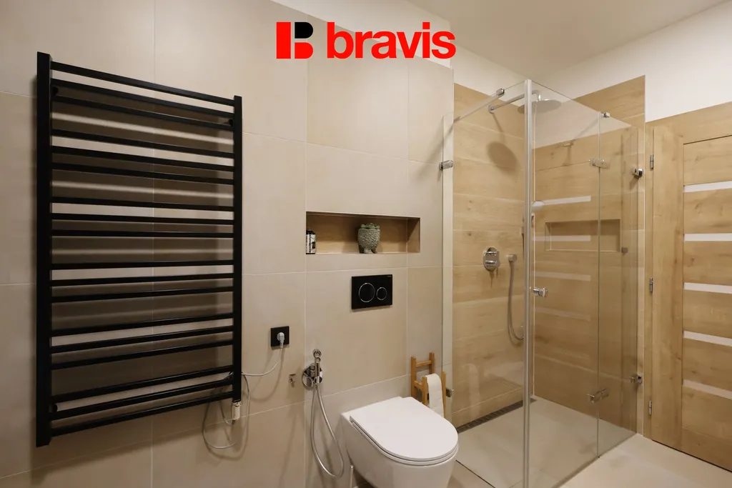 Byt prošel kompletní rekonstrukcí, přičemž majitelé dbali na kvalitu, zejména přírodní materiály - kombinace dřeva, skla a další moderní prvky, které dodávají prostorům svoje kouzlo.