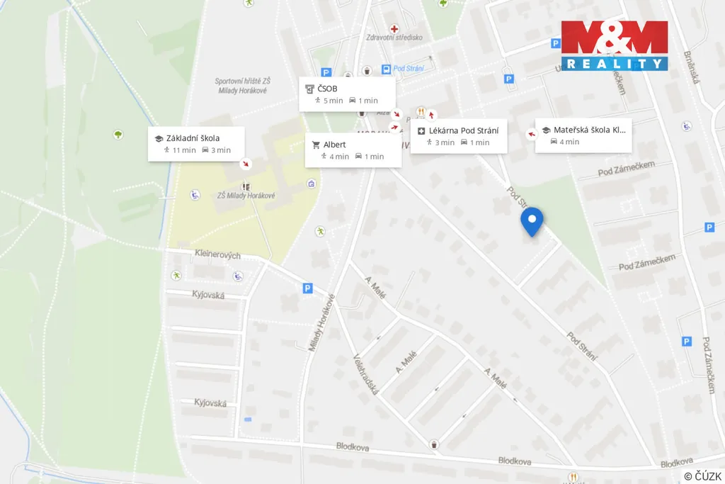 Díky orientaci a poloze je byt světlý a velmi příjemný k bydlení. Dům se nachází v klidné a nejvyhledávanější lokalitě Hradce Králové s veškerou občanskou vybaveností v dosahu – škola, školka, obchody sportovní hřiště, ale také hradecké lesy.