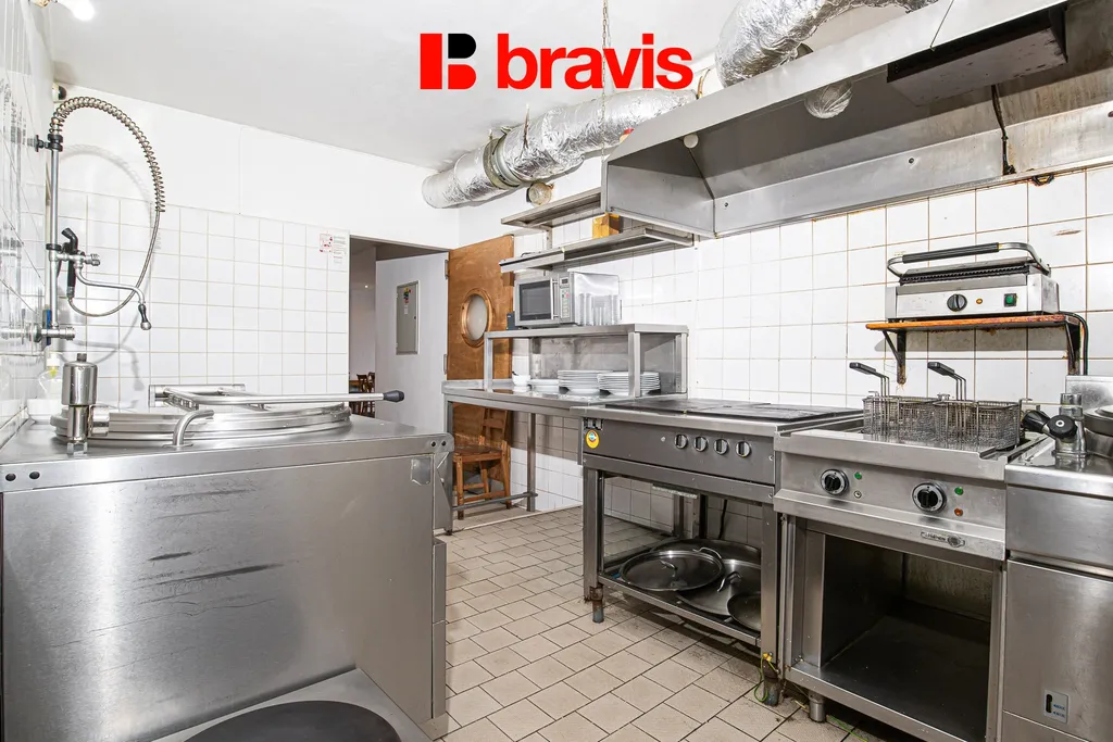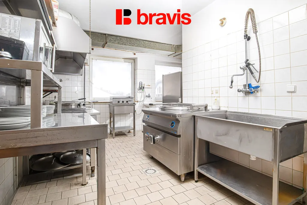 Součástí pronájmu je prostorná kuchyně o velikosti 68 m², která je plně vybavená a technologicky připravená na výrobu 150–200 obědů denně, vhodná jak pro klasickou restauraci, tak pro polední menu či catering.