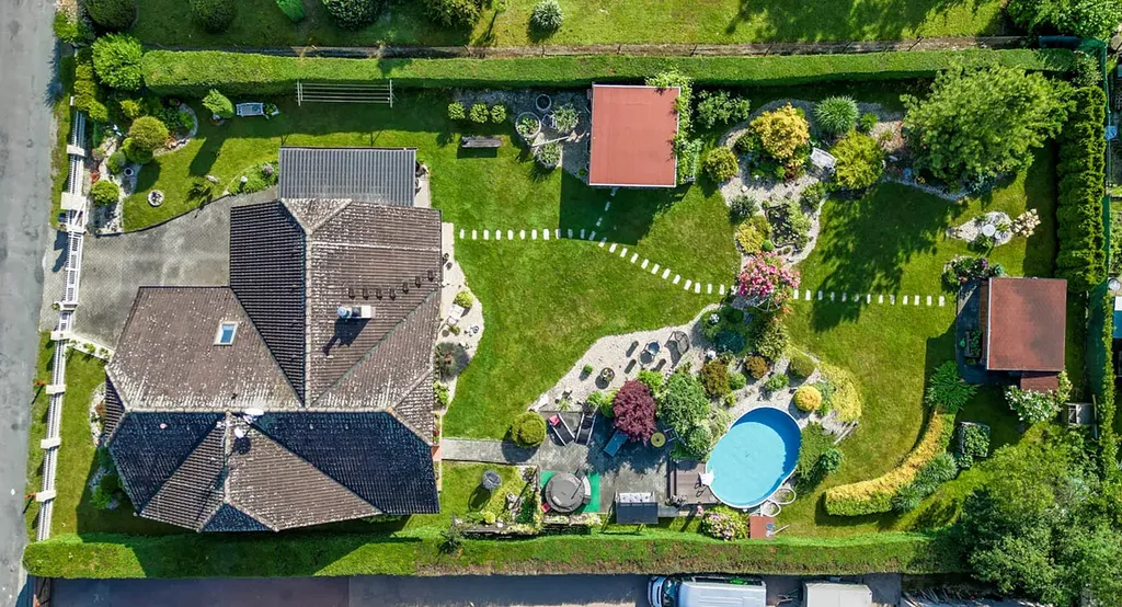 Velkou předností tohoto domu je pečlivě udržovaná zahrada, která nabízí dostatek prostoru pro relaxaci i rodinné aktivity. Najdete zde bohatou výsadbu květin, keřů a stromů, zahradní posezení i bazén.