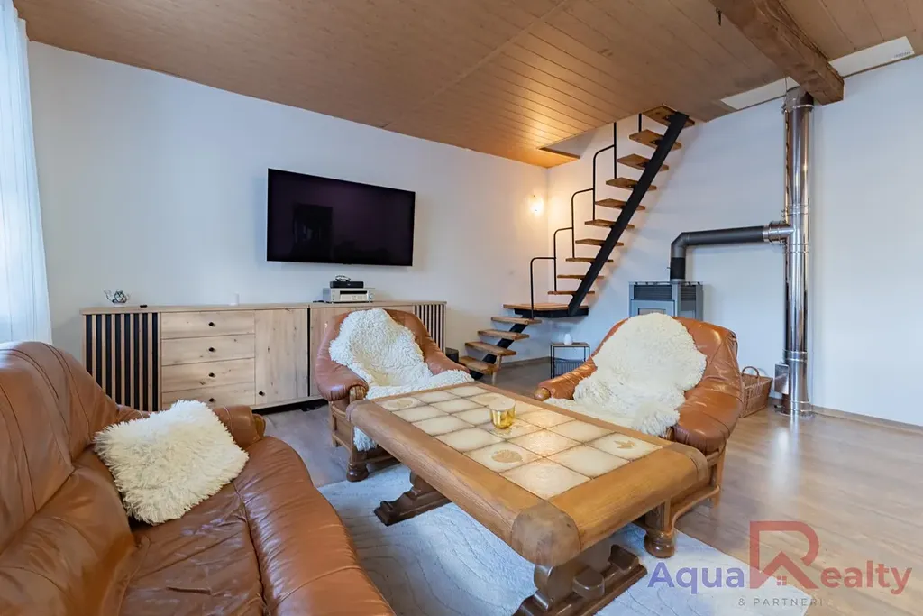 Veškerá občanská vybavenost je doslova pár kroků od domu školy, školky, obchody, lékárna, pošta i restaurace. Dům má tři nadzemní podlaží včetně podkroví a nabízí dostatek prostoru pro rodinu, která hledá pohodlné a praktické bydlení v centru města.