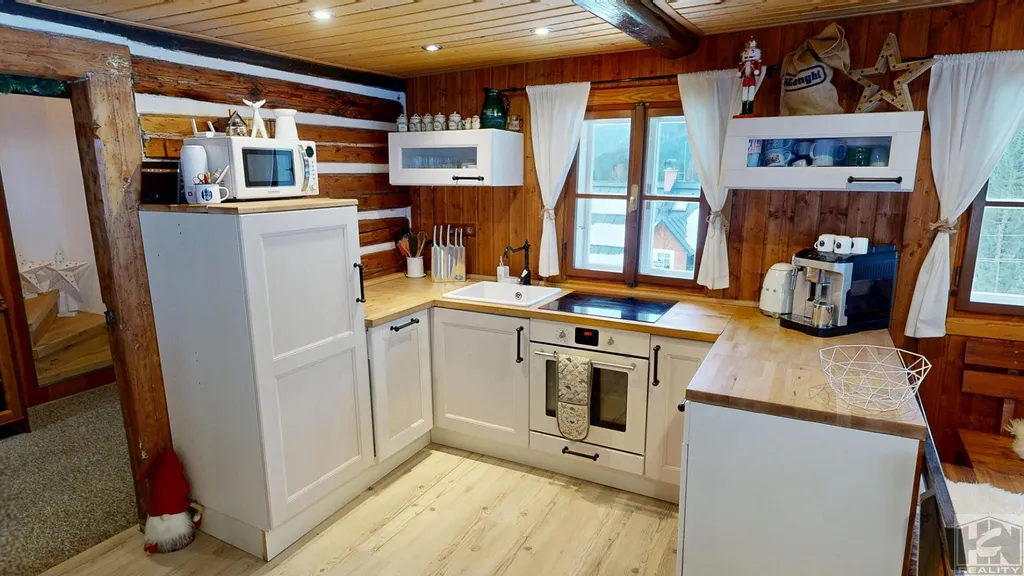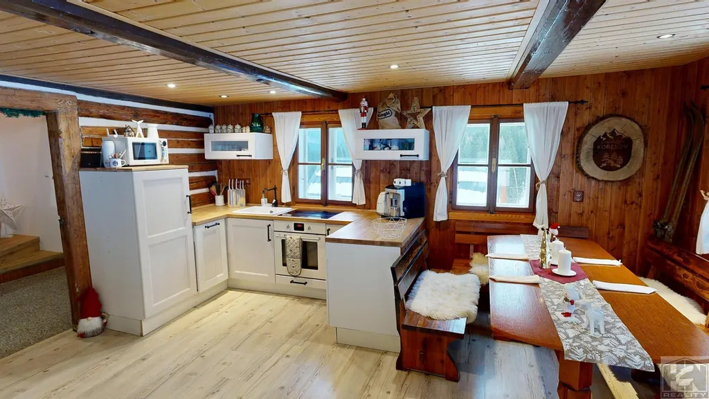 Chalupa je po rekonstrukci interiéru se stylovou kuchyní a nábytkem, což z ní činí ideální místo pro rodinnou rekreaci nebo celoroční bydlení.