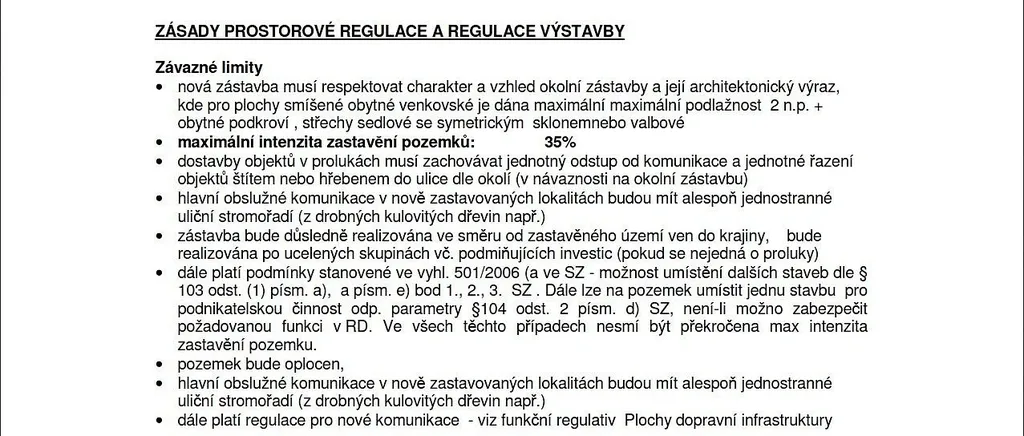 • výstavbu až do 35 % zastavěnosti,