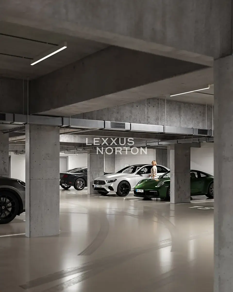 Praktické příslušenství představuje sklepní prostor a dvě garážová stání. Přímý vstup na balkon orientovaný do klidného vnitrobloku zaručuje příjemné soukromí a kontakt s městskou zelení.