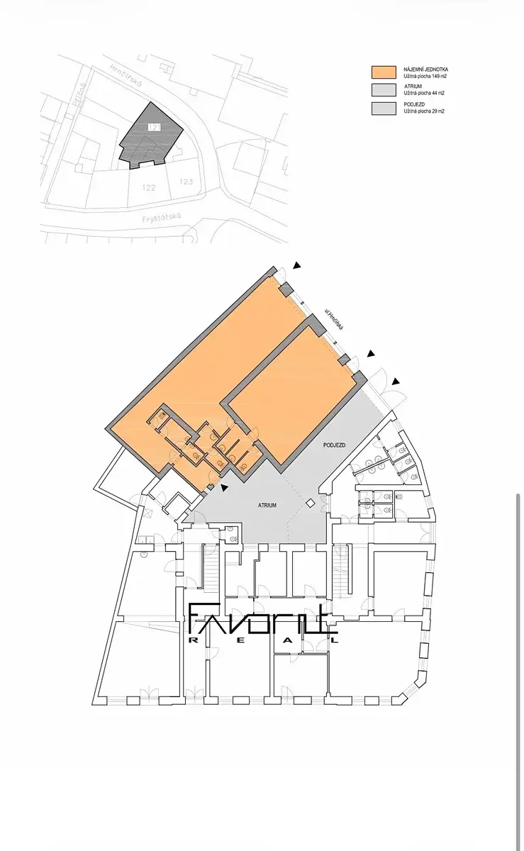 V případě zájmu o nájem všech prostor je možná vzájemná rozumná dohoda na ceně za celek. Celková obchodní plocha by poté činila 149 m².