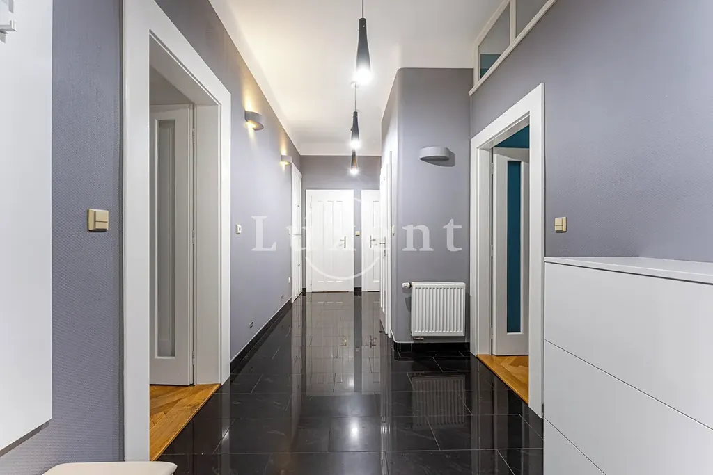 Byt je velmi světlý a vzdušný, s převážnou orientací na jih do přilehlého parku. Jižním směrem je orientován obývací pokoj s kuchyní a jídelním koutem i hlavní ložnice. Na obývací pokoj navazuje prostorná lodžie s příjemnými výhledy do zeleně. Severní strana bytu nabízí dva klidné pokoje se vstupem na zasklenou lodžii. Byt prošel kompletní rekonstrukcí v roce 2012.