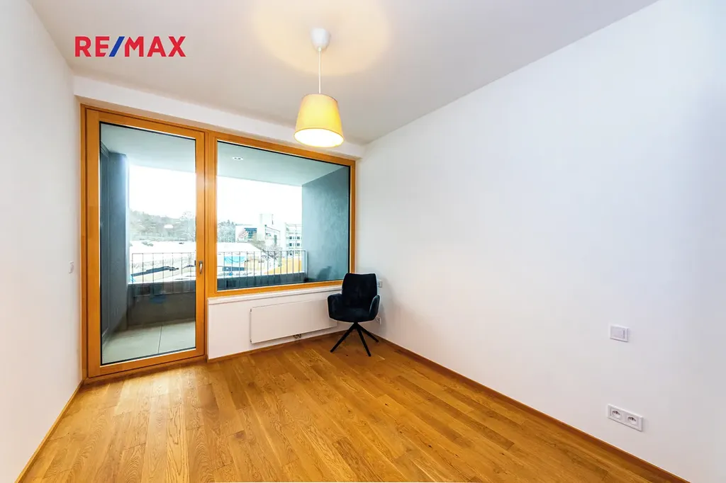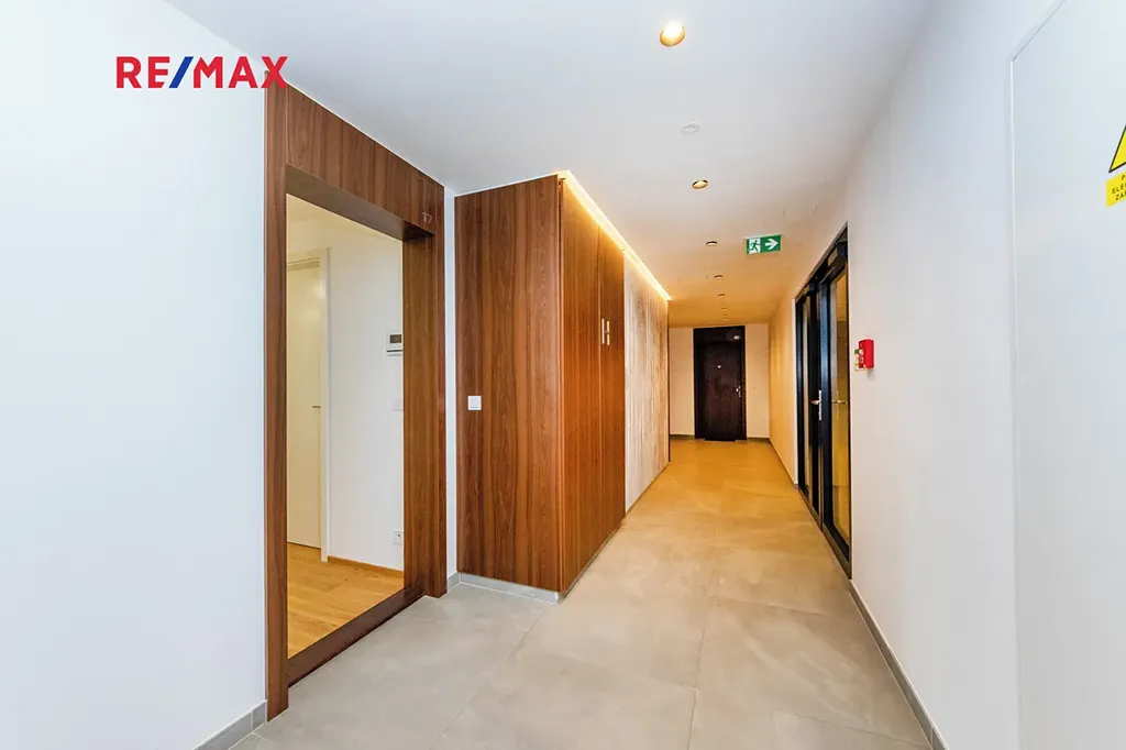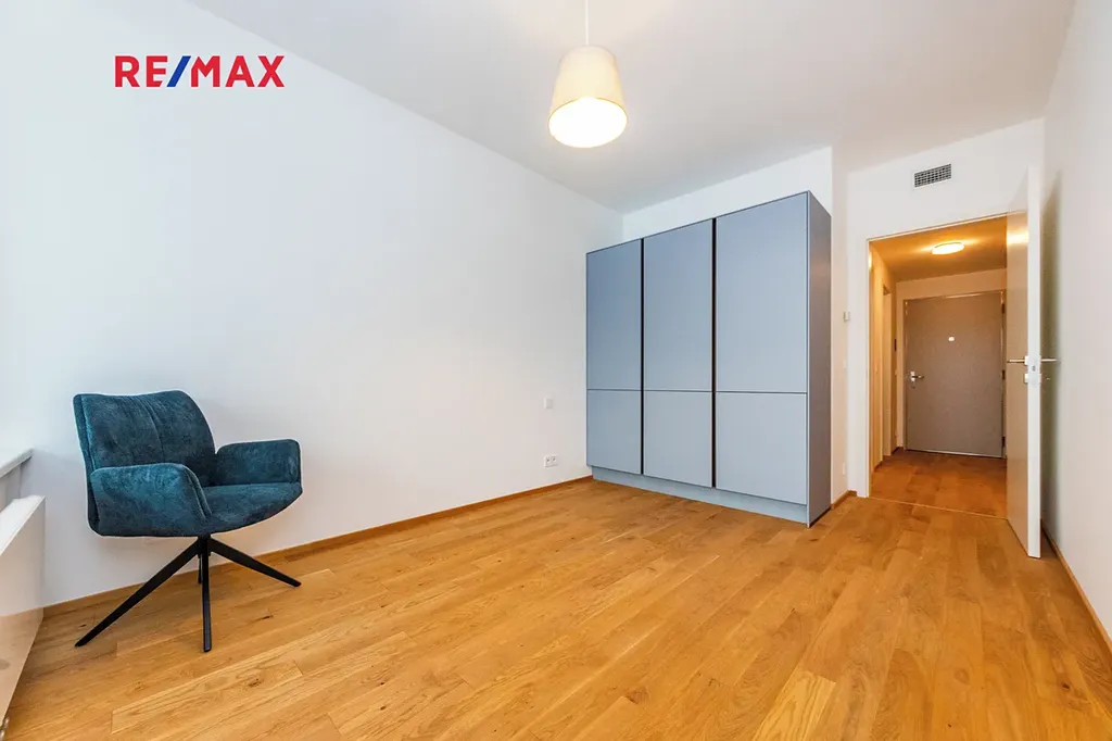 Dispozici tvoří prostorná předsíň s vestavěnou skříní, komora s úložným systémem na míru, koupelna s vanou, samostatné WC, ložnice s šatní skříní na míru a světlý obývací pokoj s přípravou na kuchyňskou linku, která je již zahrnuta v ceně. Z obývacího pokoje i ložnice je vstup na velkorysou lodžii o rozloze 17 m², ideální pro odpočinek nebo posezení.
