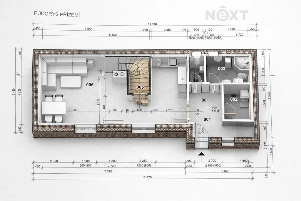Dispozice je navržena prakticky, s maximálním využitím prostoru a dostatkem denního světla.