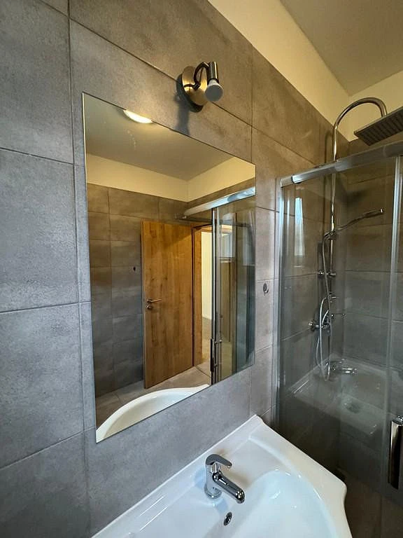 Hlavními dveřmi vejdeme do hlavní prostorné téměř čtvercové chodby o celkové ploše cca 5,6 m, ze které je samostatný vstup do ostatních místností v bytě. Obývací pokoj s kuchyňským koutem o výměře 24,52 m je díky francouzským oknům velmi světlý. Bezesporu dominantou celého bytu je zahrada s teráskou, na kterou je vstup právě ze zmiňovaného obývacího pokoje, ale vidíte na ni i z vlastní ložnice. Kuchyně je vybavena prakticky a je vybavena myčkou, digestoří a elektrickým sporákem s troubou a lednicí s mrazákem. V bytě dále nalezneme samostatné WC o výměře 1,85 m, které je vybaveno toaletou a umyvadlem. Koupelna o výměře 4,65 m je velmi prostorná. Je zde velká vana, umyvadlová skříňka s umyvadlem, elektrický boiler zajišťující ohřev vody v bytě, elektrický žebřík a v neposlední řadě přívod na pračku. Poslední místností v bytě je prostorná ložnice o celkové výměře 12,5 m², která se nabízí nevybavená.