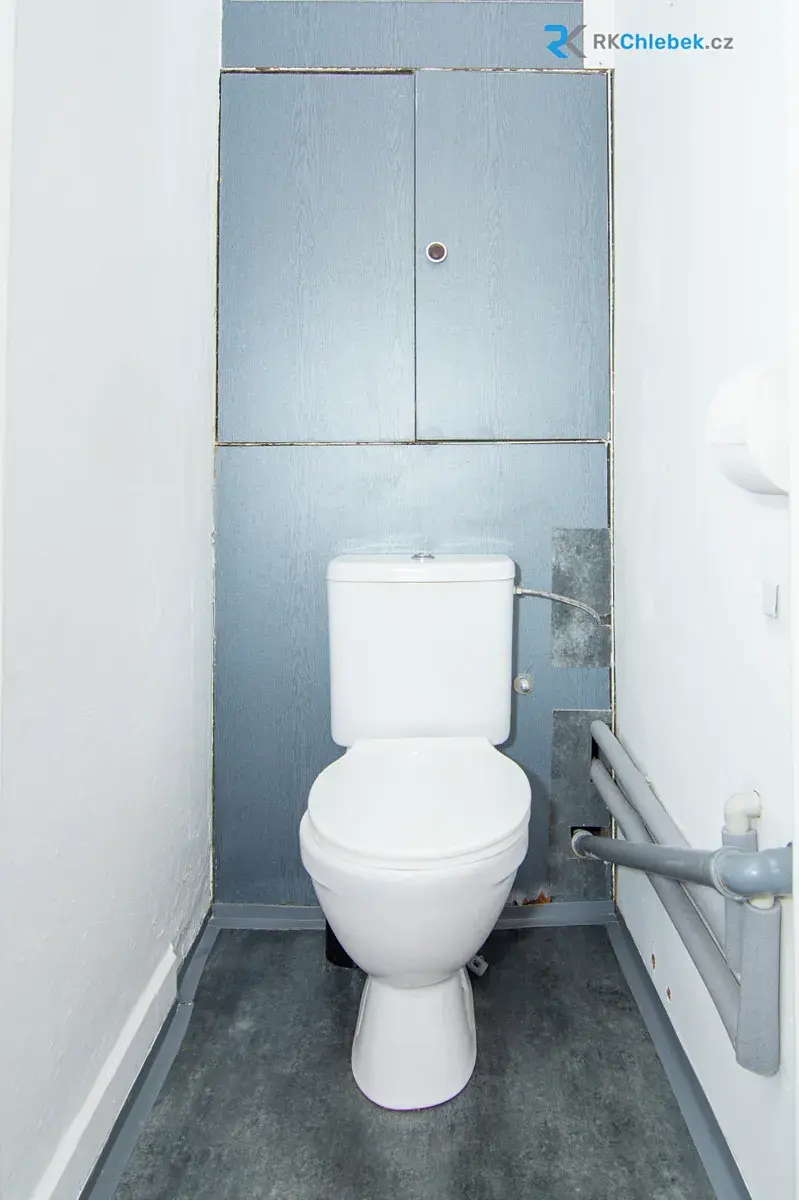 Koupelna je vybavena sprchovým koutem, toaleta je řešena samostatně. Výhodou je i prostorná vstupní chodba, která poskytuje dostatek místa pro odkládací prostor či úložné skříně.