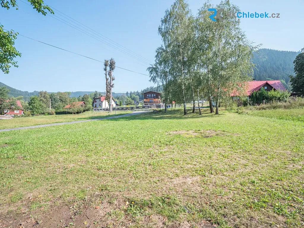 Pozemek o rozloze 4124 m² je mírně svažitý, částečně oplocený, s krásnou zahradou osázenou okrasnými i ovocnými stromy. Na pozemku se nachází studna s hloubkou 3,8 m. Odpad je řešen pomocí jímky a příjezd k domu je po asfaltové vozovce. Okolní příroda nabízí široké možnosti pro turistiku, cyklistiku a relaxaci v přírodě. Necelých 4000 m² pozemku je v územním plánu označeno jako stavební.