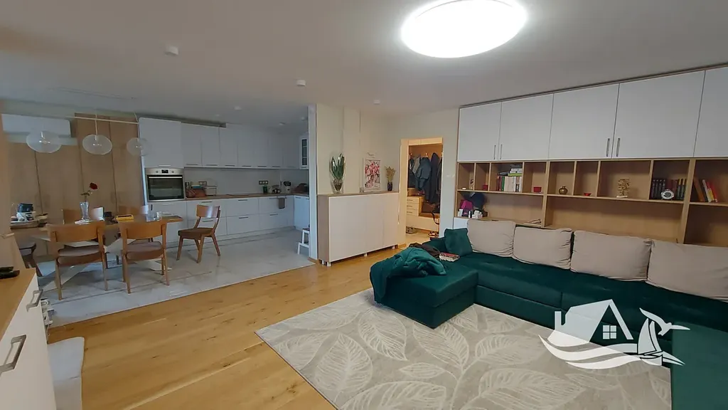 Byt se nachází ve třetím patře ze šesti v cihlovém domě s výtahem, kontrolovaným vstupem, kamerovým systémem a velmi dobře udržovanými společnými prostory. Celková užitná plocha činí 125 m2 a dispozice je navržena tak, aby vyhovovala modernímu městskému životnímu stylu. Dominantou je prostorný obývací prostor s jídelní částí a moderní kuchyní v otevřeném konceptu, který plynule navazuje na terasu orientovanou do klidného vnitrobloku. Tři samostatné ložnice poskytují dostatek soukromí, dva elegantně řešené sanitární prostory zvyšují komfort každodenního fungování a vstupní hala s vestavěnými skříněmi nabízí praktické úložné řešení.